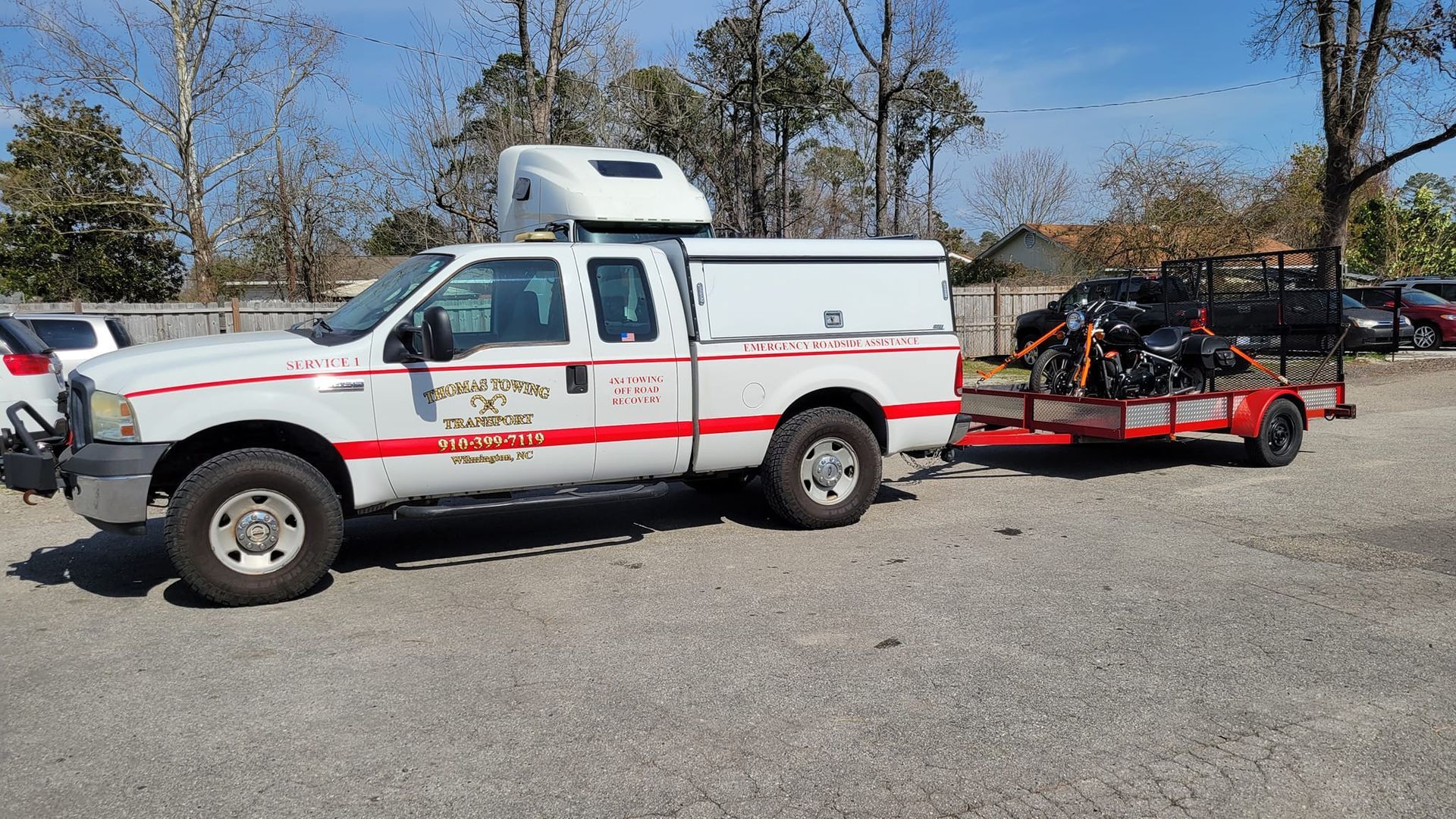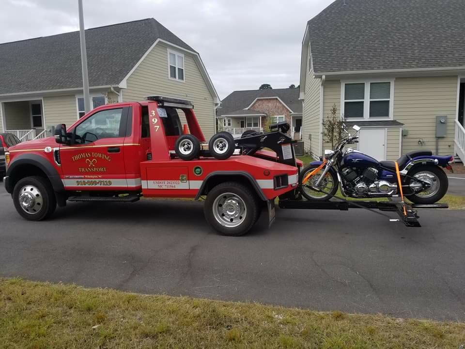 At Thomas Towing & Transport, we have years of experience in providing innovative motorcycle towing services to bikers across Wilmington, Leland, Shallotte, Burgaw, NC and the surrounding regions. No matter if it’s day or night, we’re here to provide the motorcycle towing services that you deserve. We understand how important your bike is to you, which is why our team will be extra careful while loading it up. If you’re interested in learning more or need a towing service, please feel free to contact a member of our team!